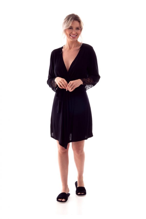 Due to its fabrication in viscolycra, this American-Style Set with lace is super comfortable to touch while wearing, even though it’s a sleepwear. The off-white fillet is present in the detail of the collar and all over the front, giving an elegant contrast.