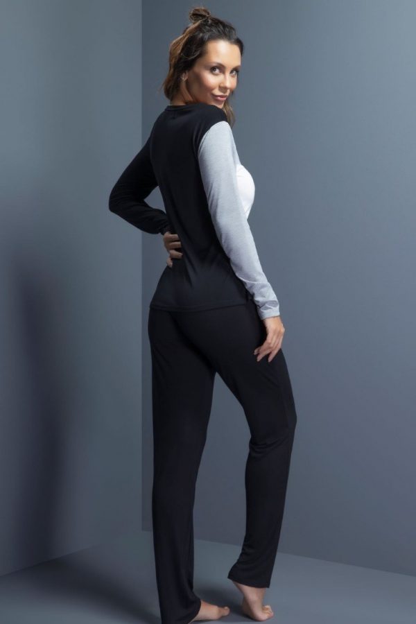 Women’s Long Pajamas Sleeve Black Cutouts in Off White and Mix