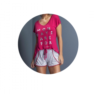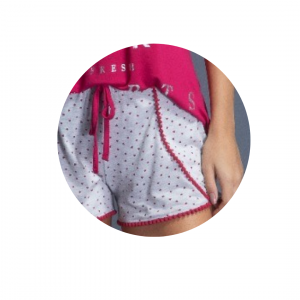 Made of very soft knit, the Short Pajamas with pompom on the shorts are the touch of comfort that bedtime deserves. In a loose fit, it has short sleeves, a V-neckline and a front print with a foil phrase, giving a touch of cuteness to the t-shirt. The short has a loose fit with rounded cutouts and a decorative pompom on the hem and front, a decorative drawstring and an elastic waistband, in addition to a mini hearts print.